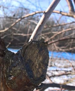 Milyen harcot? Aki látja az ültetvényt, nem hiszi el, hogy még csak most lesz 3 éves. Nagyok a fák, erőteljesek, így sokat kell vágni rajtuk, alakítgatni, s bizony már a fűrész is elő-előkerül a metszésükkor. A sebeket igyekszem lekezelni, amíg van erőm, időm még a legkisebbeket is. Tudom, hogy a régi két forintos a határ, az a fölöttieket ildomos és javasolt is kenegetni, de én az ez alattiakkal is képes vagyok bíbelődni. (Egyébként a kis sebek fertőződésének megakadályozására a közvetlenül a metszések utáni rezes lemosó permetezés is jó lehet.)